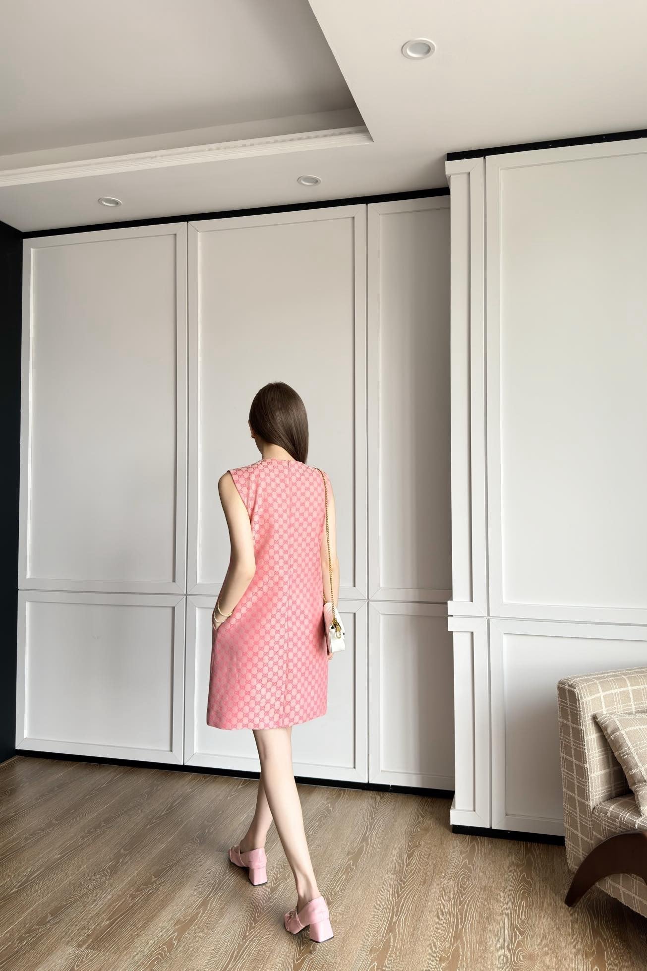 Gu* GG jacquard sleeveless denim dress