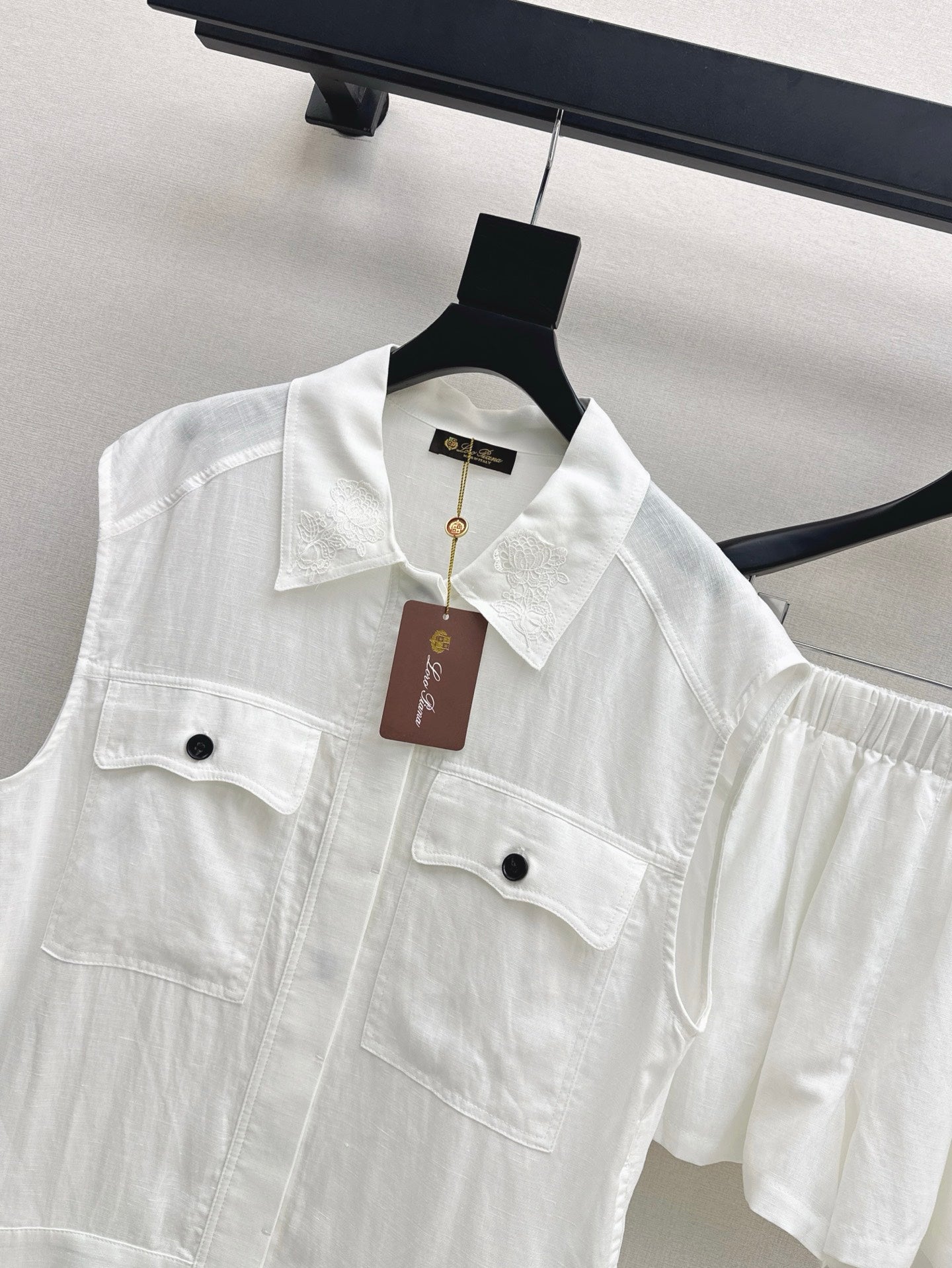 Embroidered flowers embellish the lapel Sleeveless loose three-dimensional version of the vest jacket Small sling + elastic waist shorts