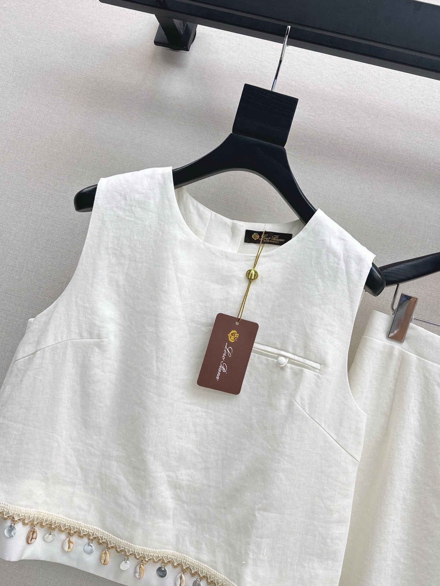 Lor*P 25ss lace trim cropped vest and skirt suit