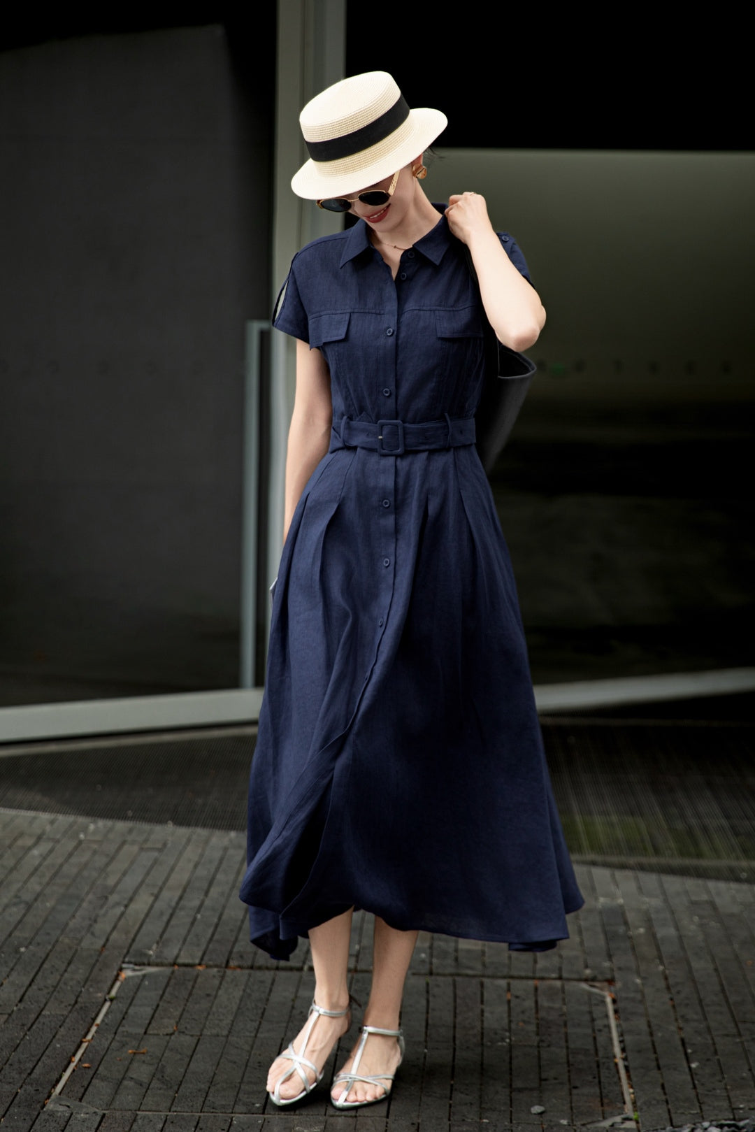 Lor*P 25ss tied belt cap sleeve shirt dress