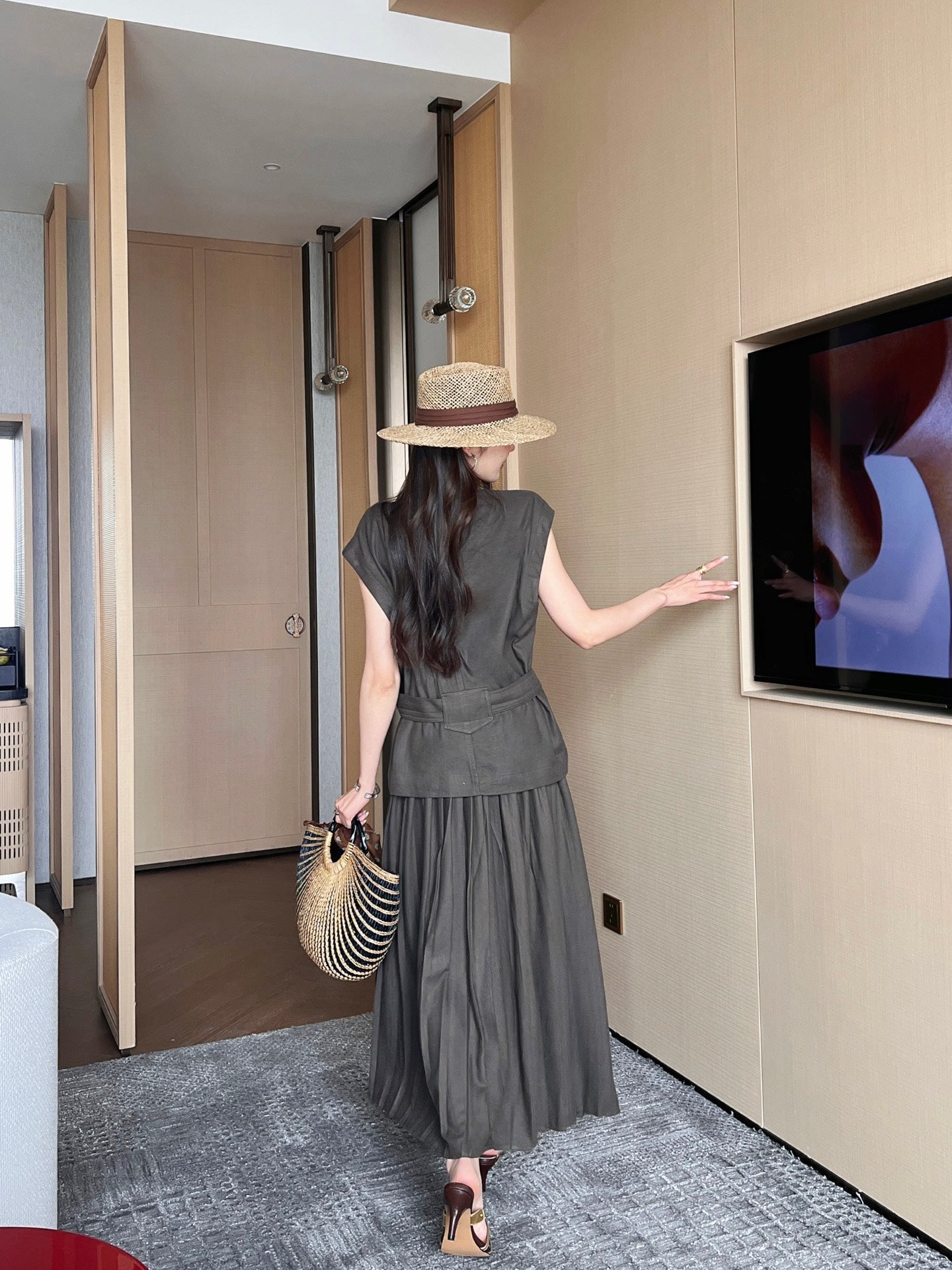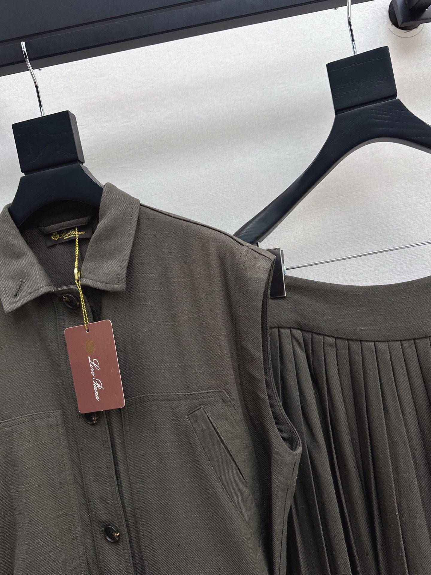 Lor*P belted vest + pleated skirt set