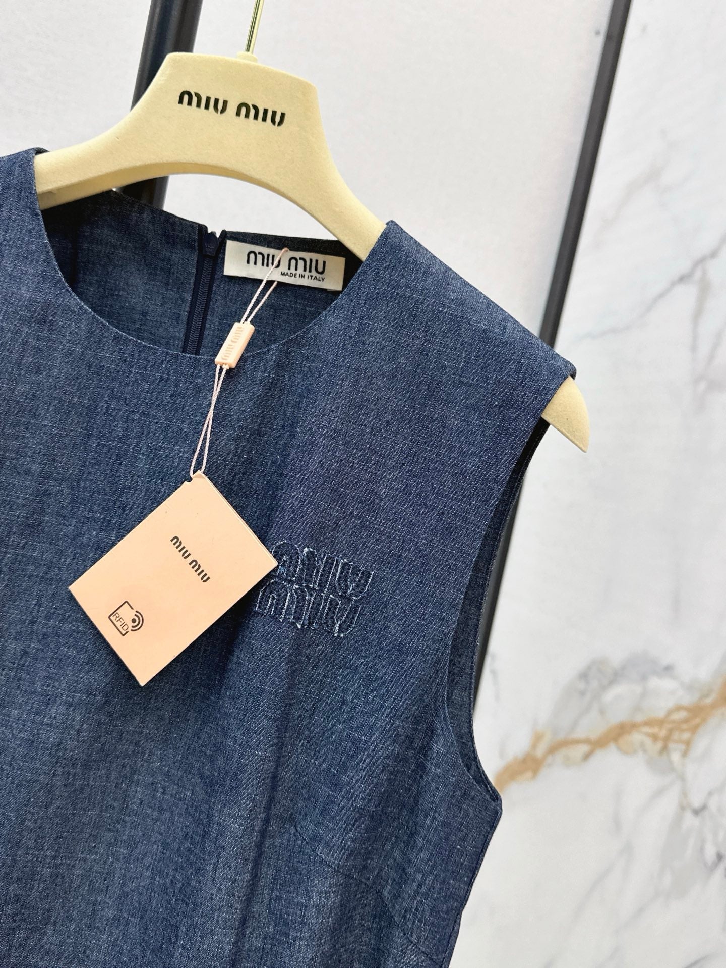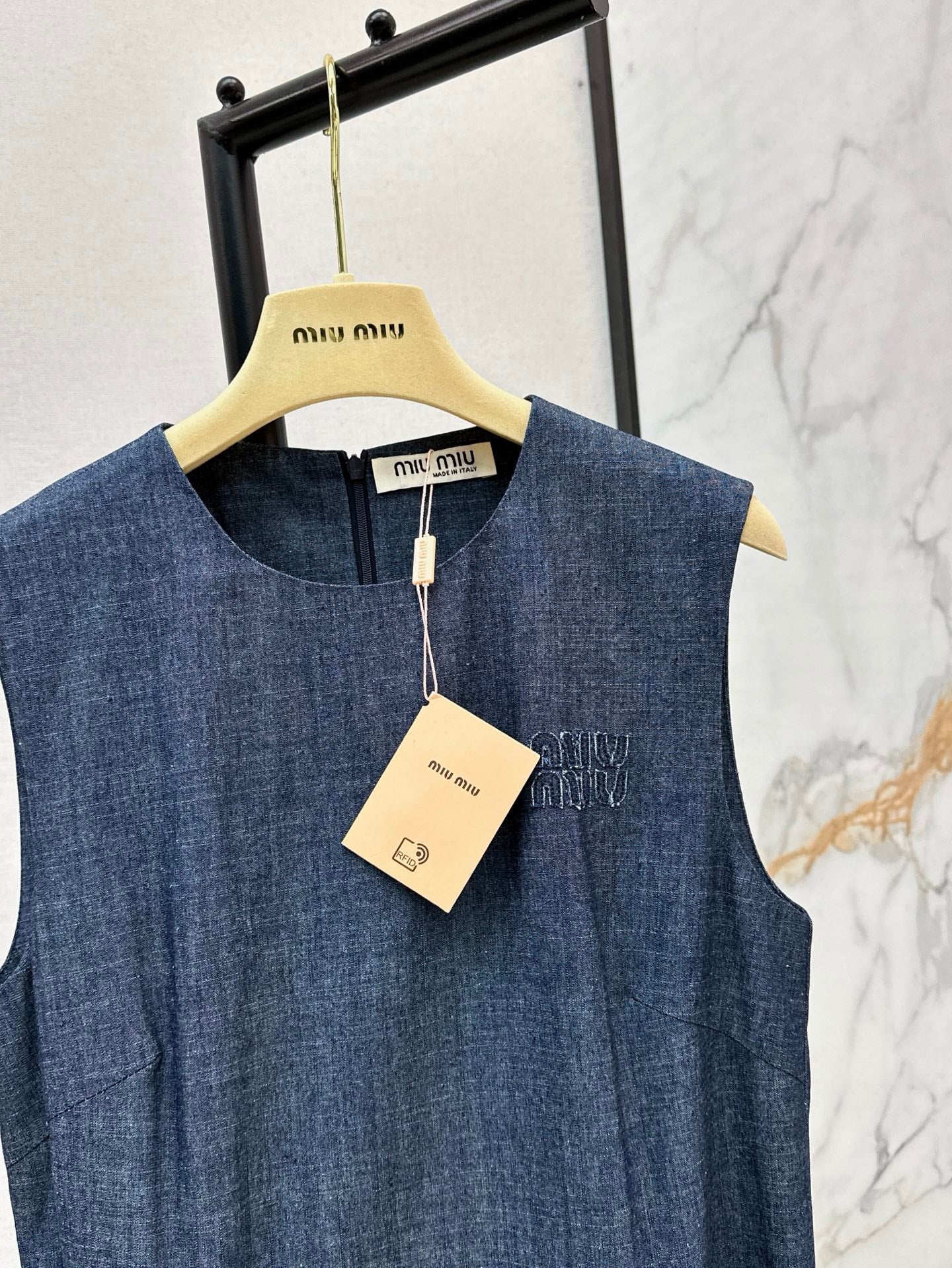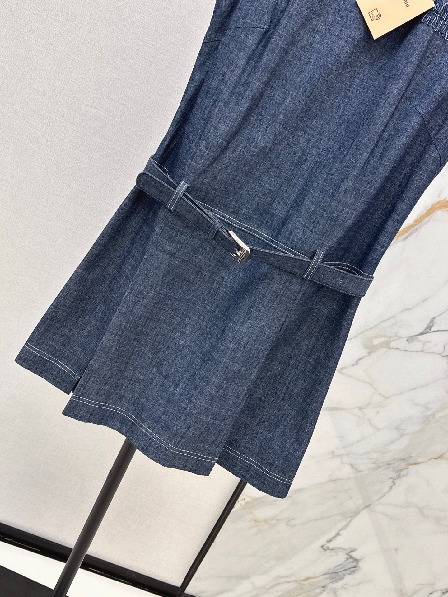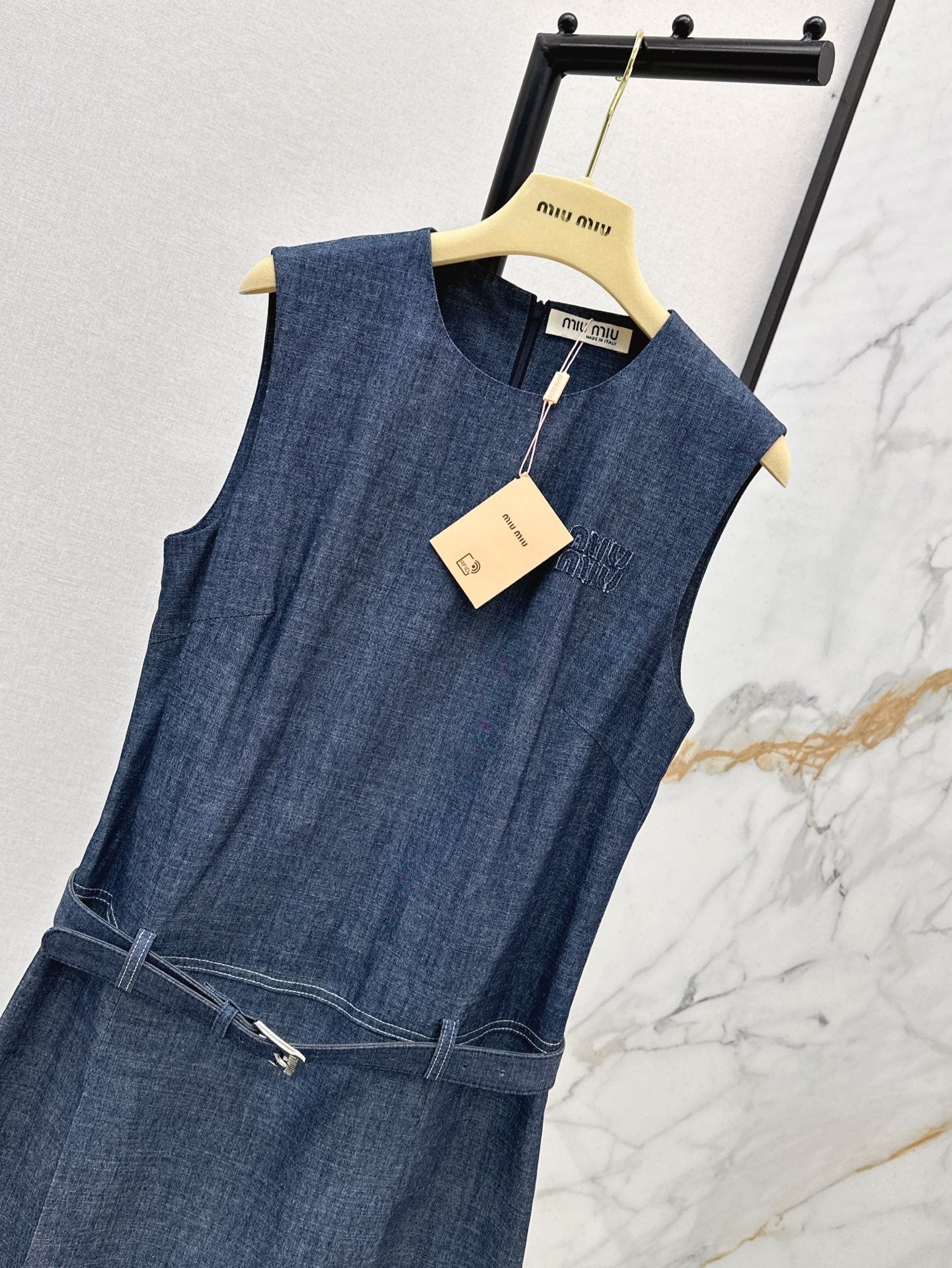 M*u 25ss belted sleeveless denim dress