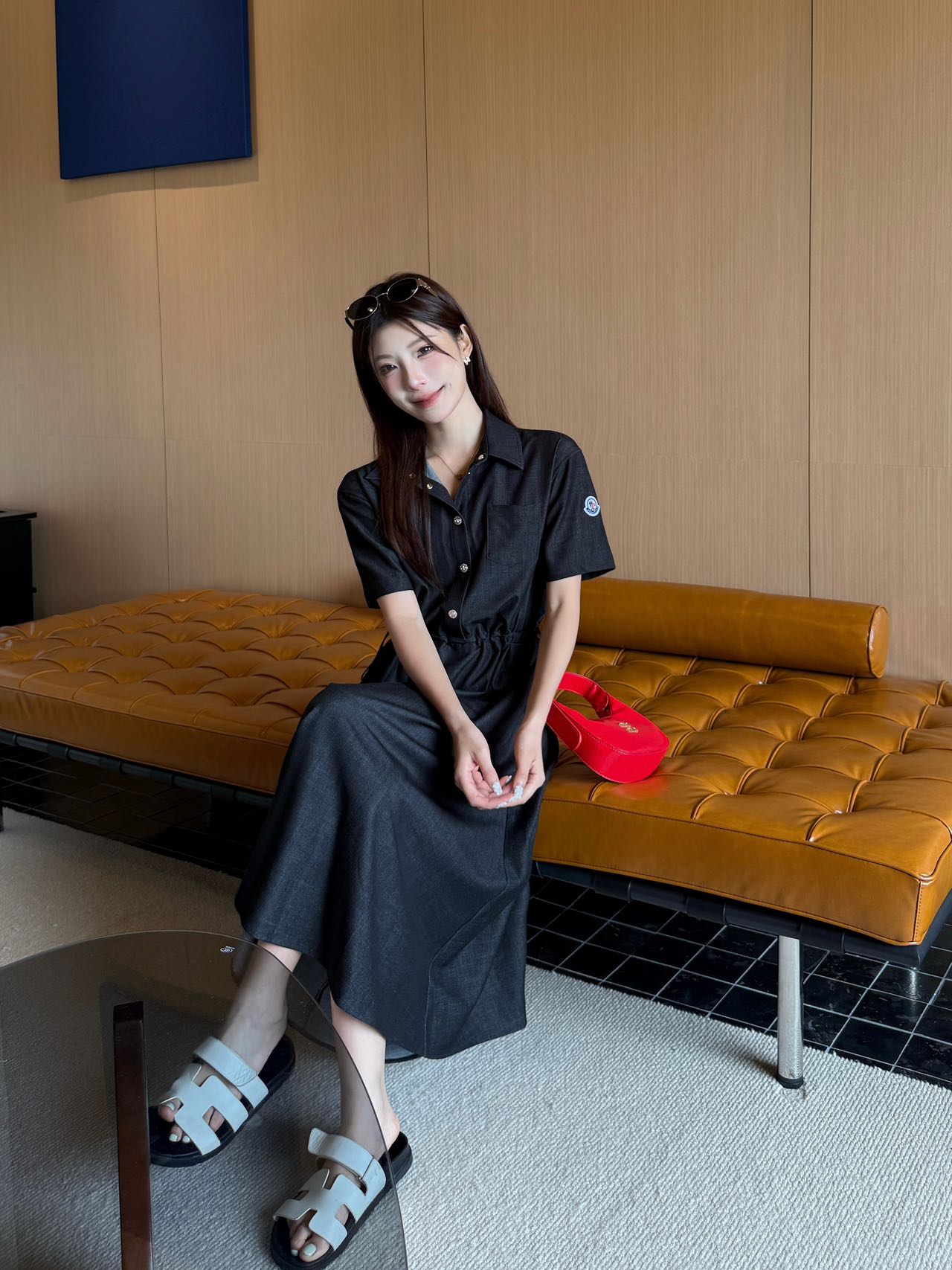 Monc* 25ss mid-length drawstring shirt dress