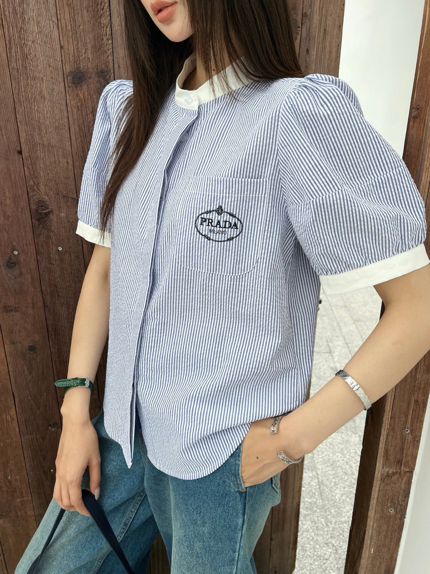 Pra* 25ss embroidered crop shirt
